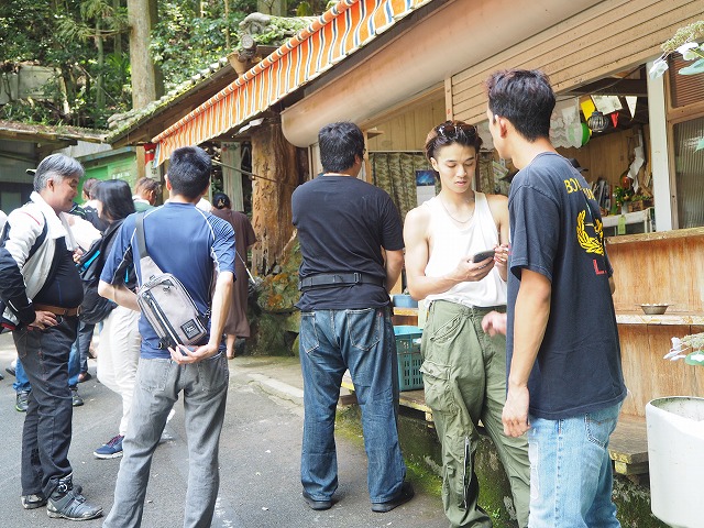 散策してみたり、川魚の焼けるにおいに鼻をくすぐられながら順番待ちです。